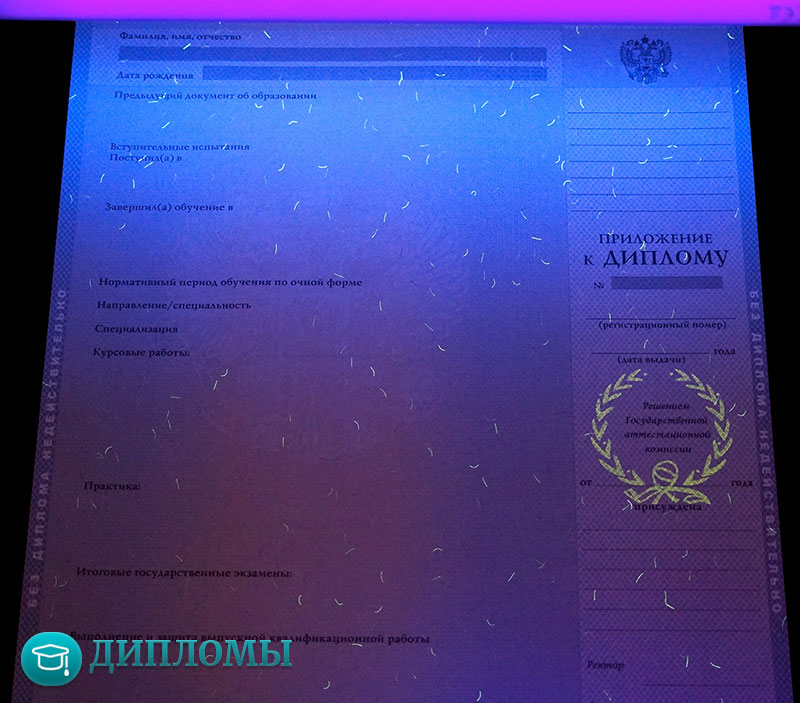 • Заполнение диплома по стандартам Министерства образования, соответствующим указанному вами временному периоду и конкретному ВУЗу